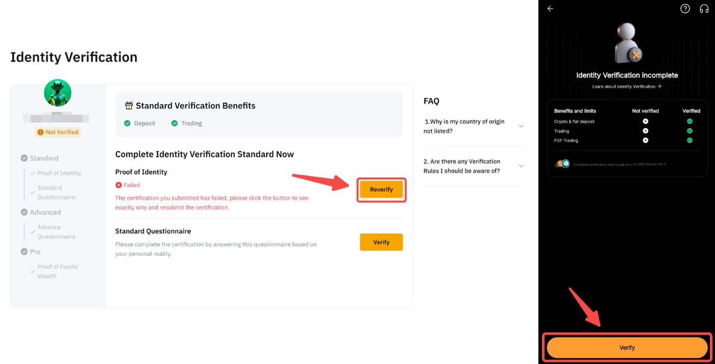 Antes de su próximo intento, lea atentamente nuestros requisitos y prepare los documentos justificativos pertinentes. Prepare su equipo y su cámara, y asegúrese de que se encuentra en un entorno luminoso. Cuando esté todo listo, haga clic en Verificar ahora para volver a realizar la verificación KYC.