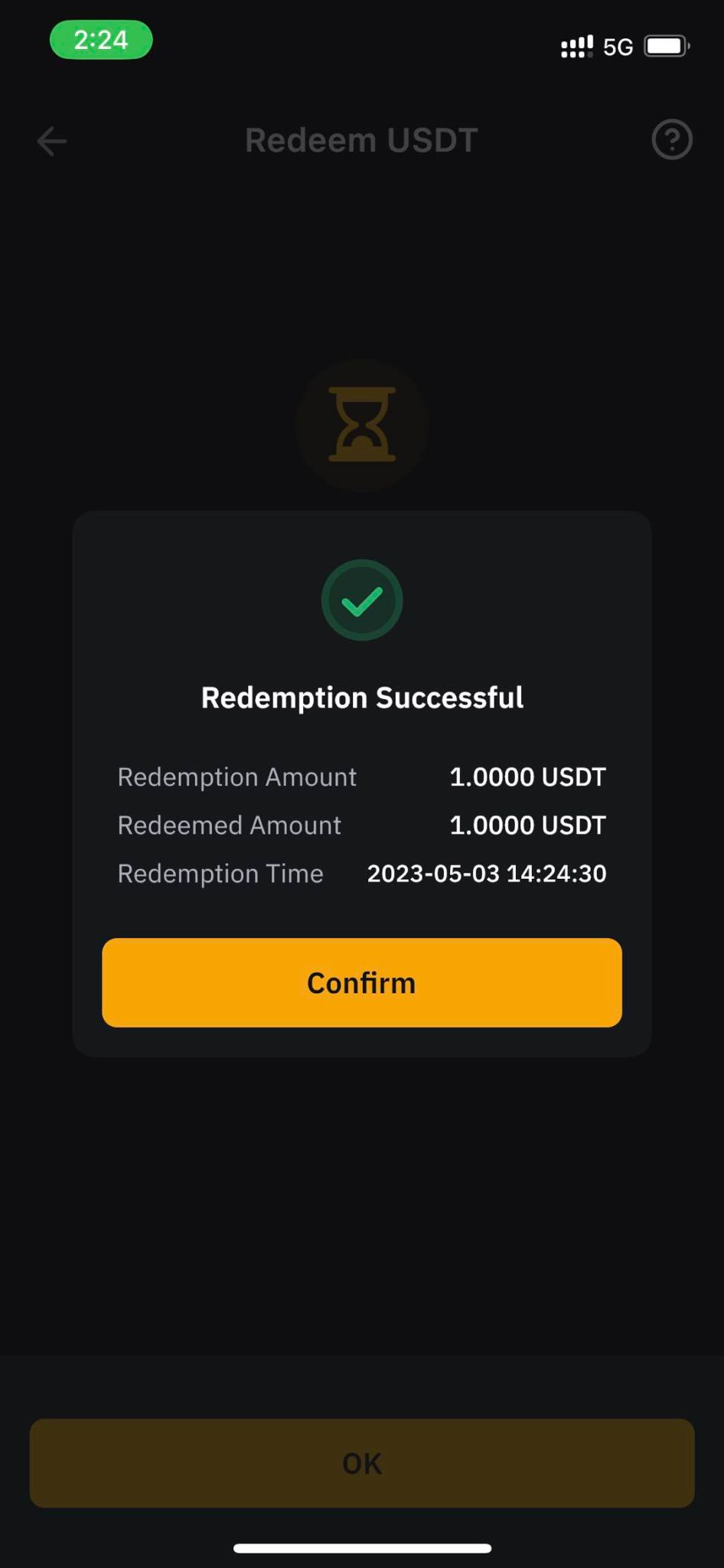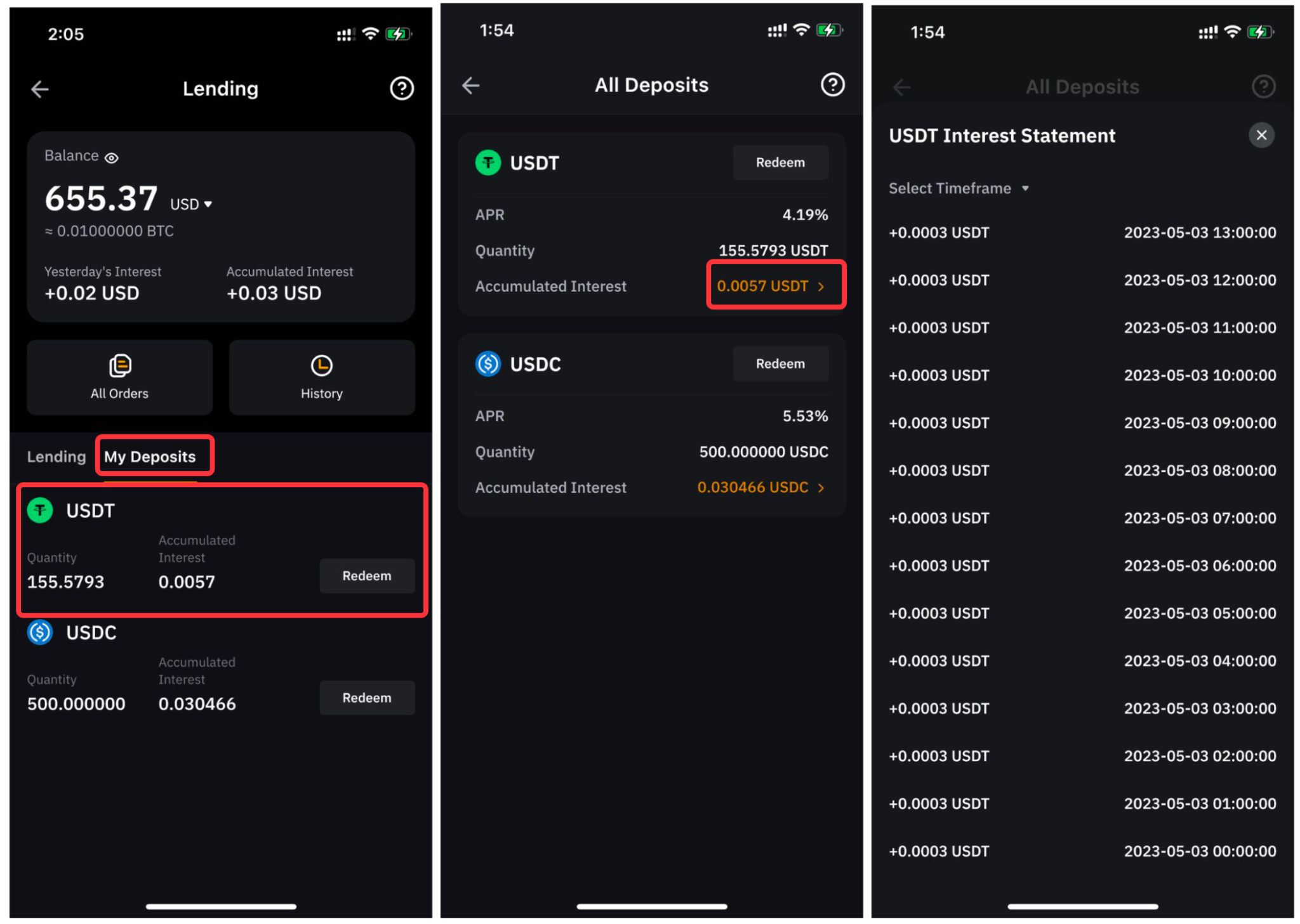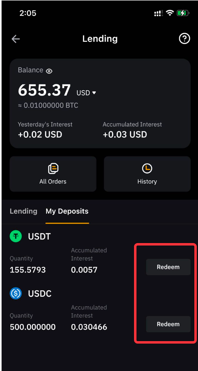 La cantidad depositada y el interés obtenido se abonarán en tu Cuenta Spot o tu Cuenta de trading unificado (si tu cuenta se ha actualizado) tras los canjes correctos.