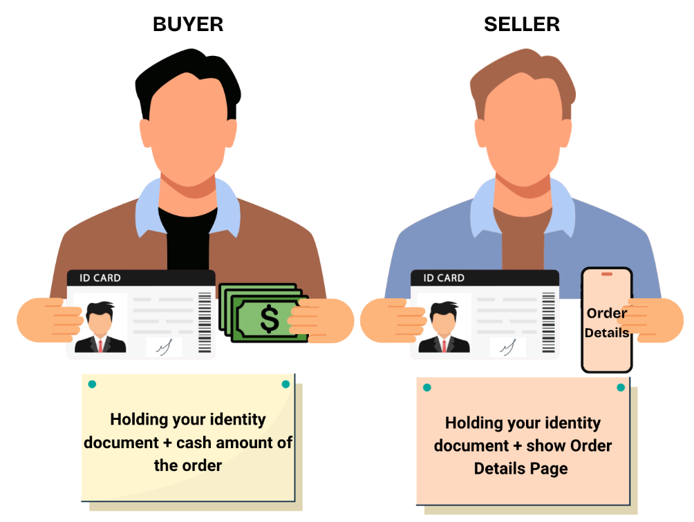 12. Prueba de pago: Conserve la prueba del pago en efectivo, es decir, una foto en la que ambas partes tengan sus respectivos documentos de identidad, el efectivo implicado en la transacción y la página de detalles de la orden que muestre claramente el ID de la orden, el importe de la transacción y el importe de la moneda.