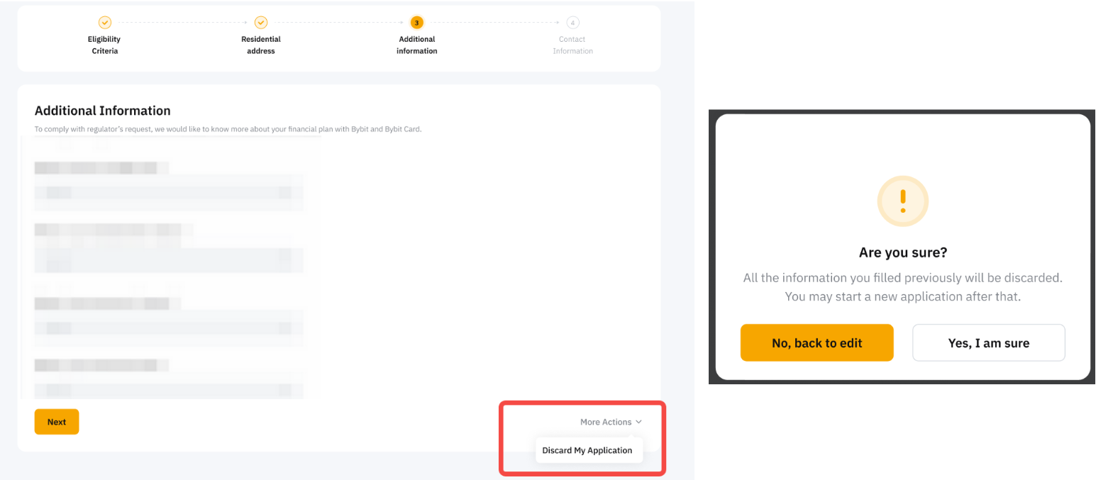 Puedes cancelar tu solicitud de Bybit Card enviando una solicitud aquí para solicitar ayuda a nuestro equipo de atención al cliente.