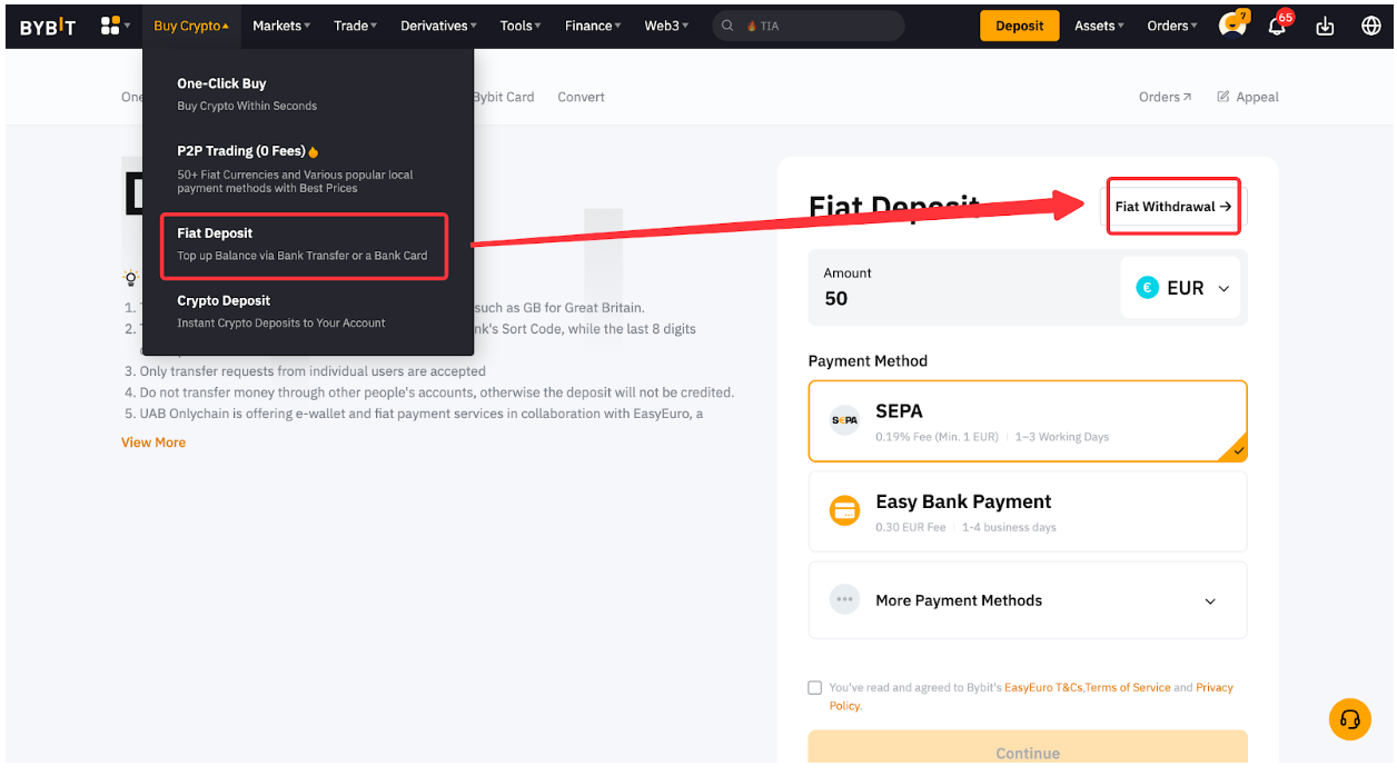 Es necesario depositar en la cuenta bancaria utilizando el mismo método de pago para añadir la cuenta para el retiro fiat.