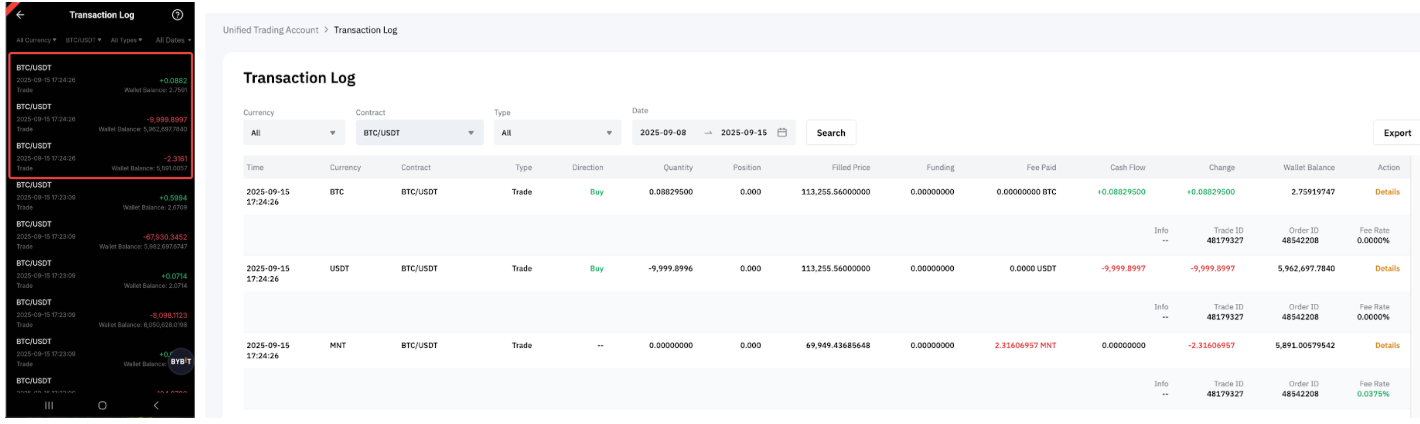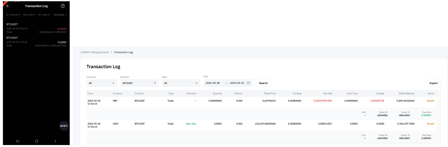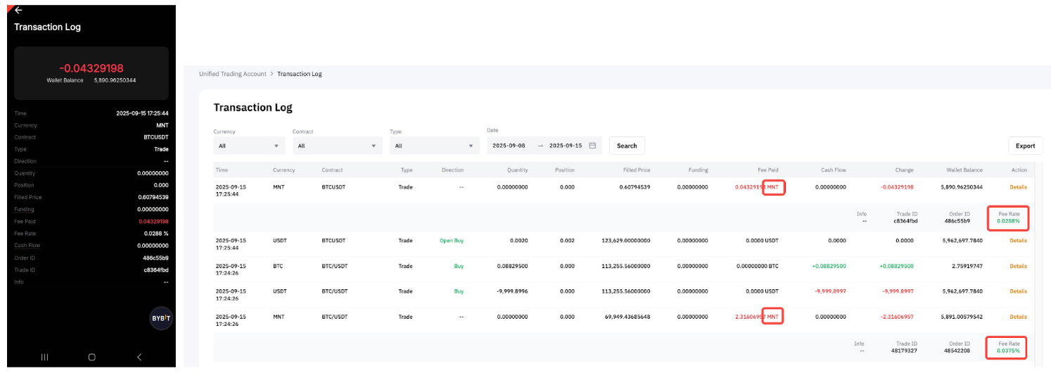 — En el PyG cerrado y realizado, cualquier parte de las tarifas pagada en MNT se convertirá y registrará como USDT o USDC, en función del tipo de contrato.