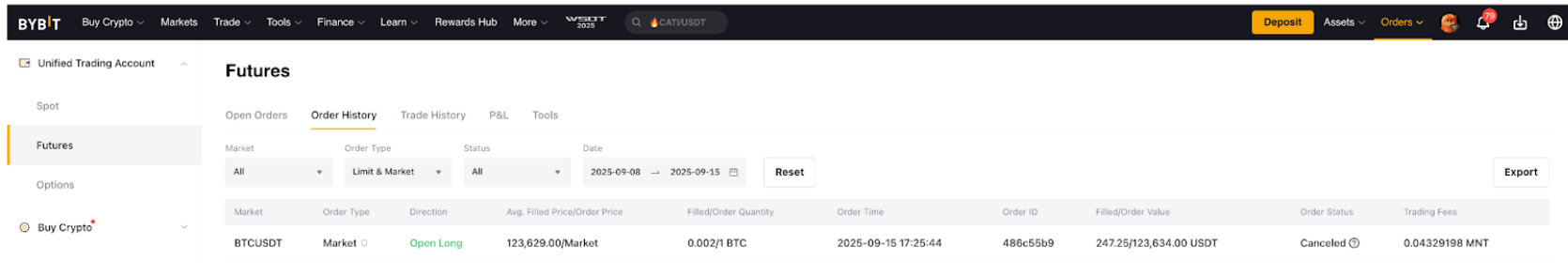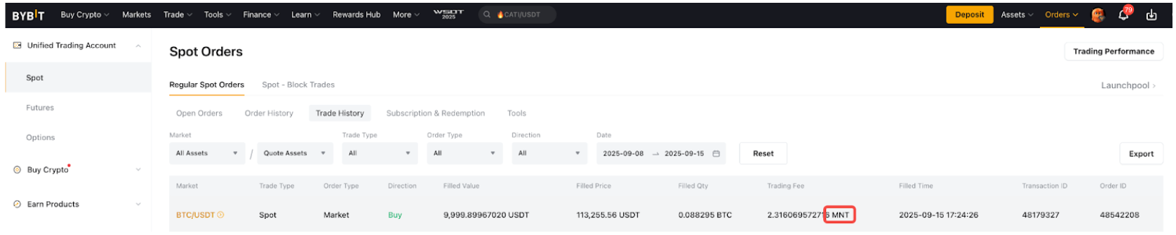 Nota: Solo puedes usar los MNT de tu cuenta de trading unificada (UTA) para pagar las tarifas de trading.