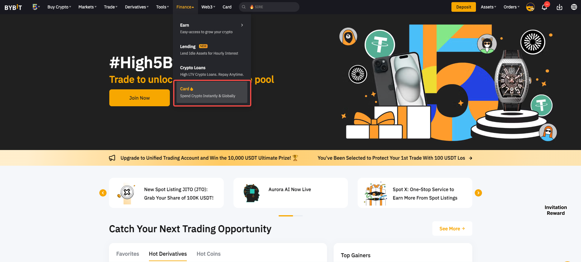 Paso 1: Ve a la barra de navegación de la página de Bybit, haz clic en Finanzas y, a continuación, selecciona Card para acceder a la página de solicitud de Bybit Card. Toca en Más información junto a Versión Lite disponible para iniciar tu solicitud de una Bybit Virtual Card Lite.