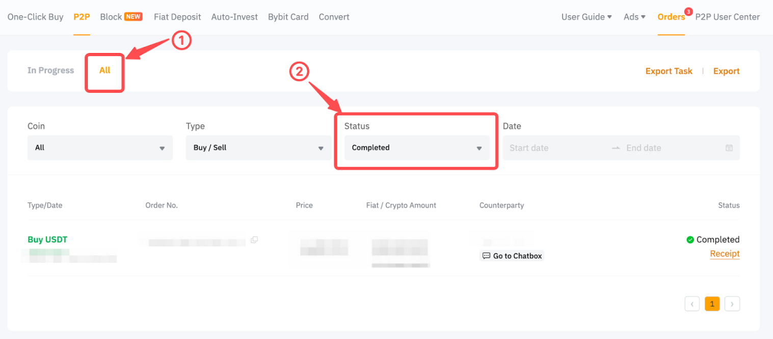 Si desea editar o eliminar sus reseñas en la plataforma de comercio P2P de Bybit, siga los pasos que se indican a continuación: