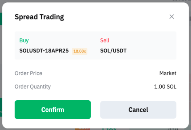 Paso 4: Haz clic en Comprar o Vender para realizar tu orden. Revisa todos los detalles en la ventana emergente de confirmación, luego haz clic en Confirmar para continuar o Cancelar para descartar.