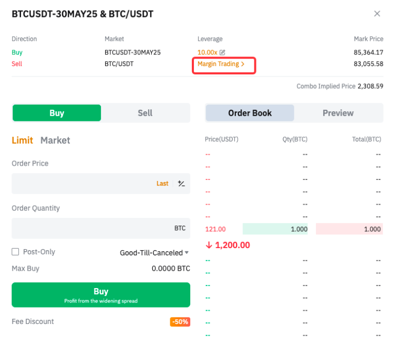 — Si se trata de Spot trading, el apalancamiento solo se puede configurar si se encuentra habilitado el trading con margen. Puedes habilitar o deshabilitar el trading con margen desde la zona de órdenes de spot trading.