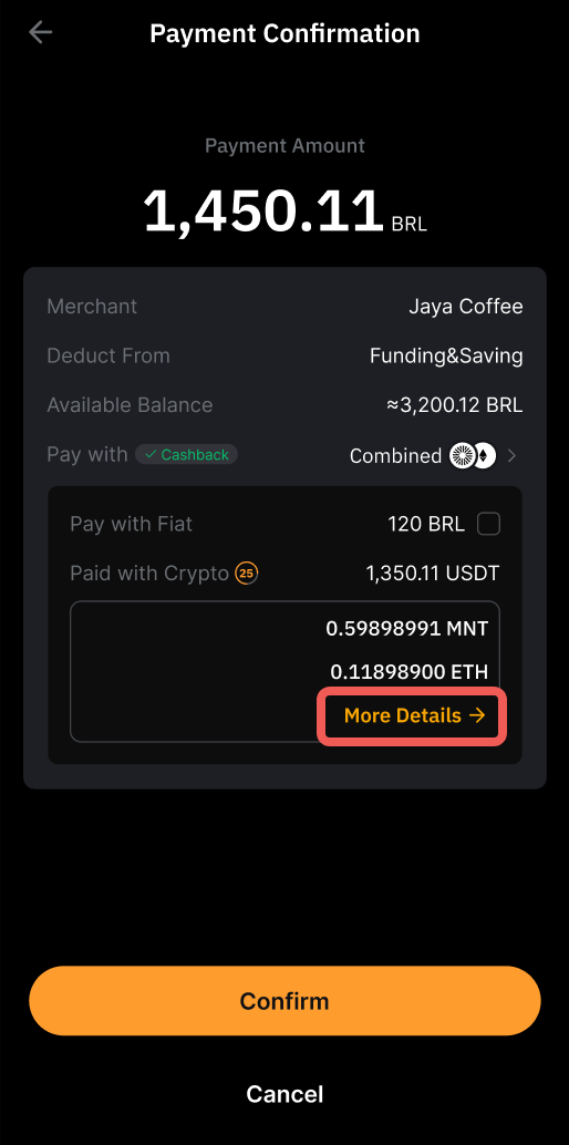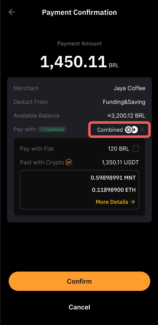 Si el botón Combinado está habilitado y su cuenta de la que Provienen los Fondos no tiene suficiente USDT, los fondos de su cuenta Earn se utilizarán en función de su prioridad de pago establecida.