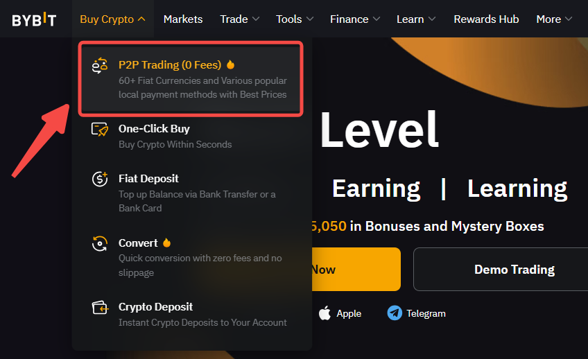 Paso 1: haz clic en Comprar cripto → Trading P2P en la parte superior izquierda de la barra de navegación para ir a la página de trading P2P.