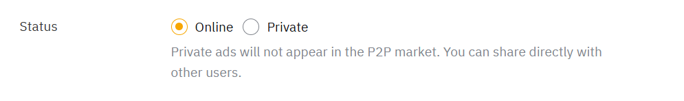 1. Público: Los anuncios se mostrarán en la página de anuncios P2P y los otros traders pueden realizar una orden contigo.