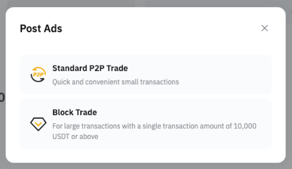 Paso 3: Haz clic en Trading P2P o Bloque P2P. Para poder publicar un anuncio, consulta esta página.