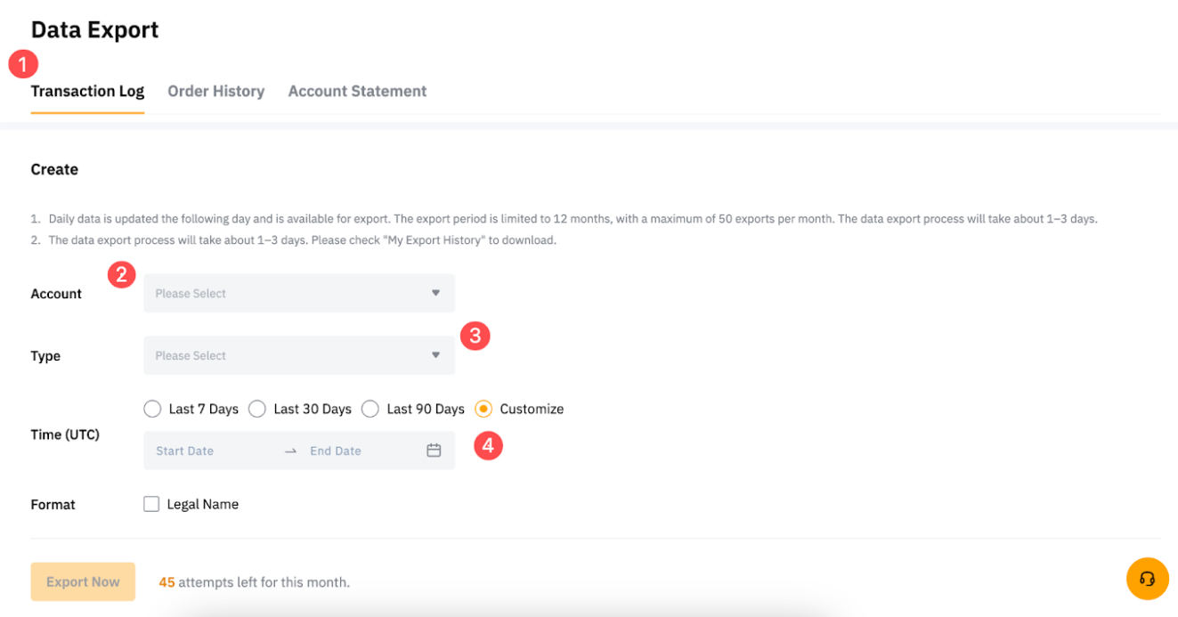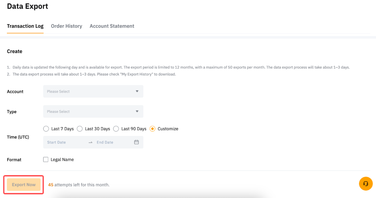 — Es posible que algunos datos no estén disponibles en el extracto de cuenta, como el historial de órdenes spot o de derivados. Para exportar estos datos, ve directamente a cada página del Historial de productos y haz clic en el botón Exportar en la esquina superior derecha.