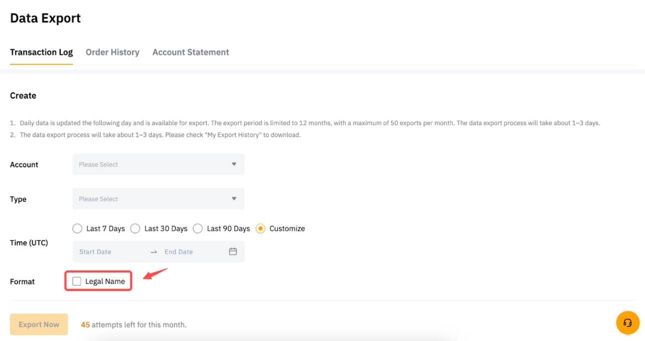 De forma predeterminada, solo se mostrará tu UID de Bybit en el extracto, pero puedes marcar la casilla Nombre legal para incluir tu nombre de verificación de identidad e información en tu extracto de cuenta.