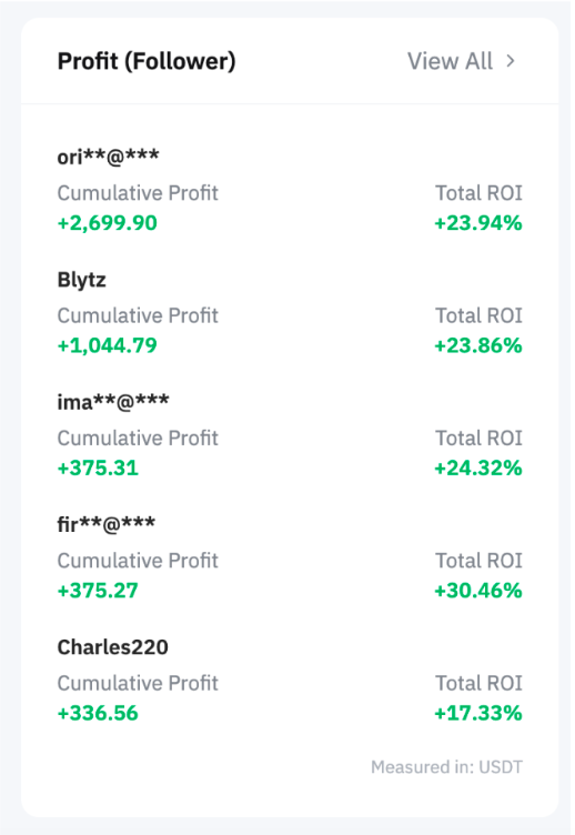 Una vez que un Seguidor comienza a seguir al Master Trader, su rendimiento se mostrará en esta sección en tiempo real. El Beneficio Acumulado y el ROI Total se actualizarán a las 12AM (medianoche) todos los días.
