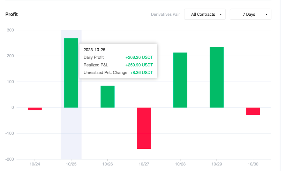 PyG acumulado realizado + PyG no realizado por la posición ocupada en operaciones perpetuas USDT y el bot de negociación