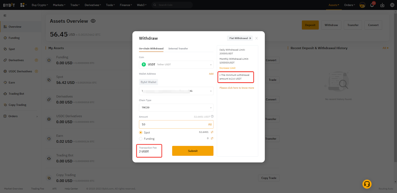 Комиссия за вывод средств взимается за вывод средств в блокчейне в зависимости от выбранных монет и сетей. Минимальную сумму вывода средств и комиссии за вывод средств можно посмотреть в окне вывода средств. Обратите внимание, что комиссия за вывод средств является фиксированной для любой суммы вывода средств.